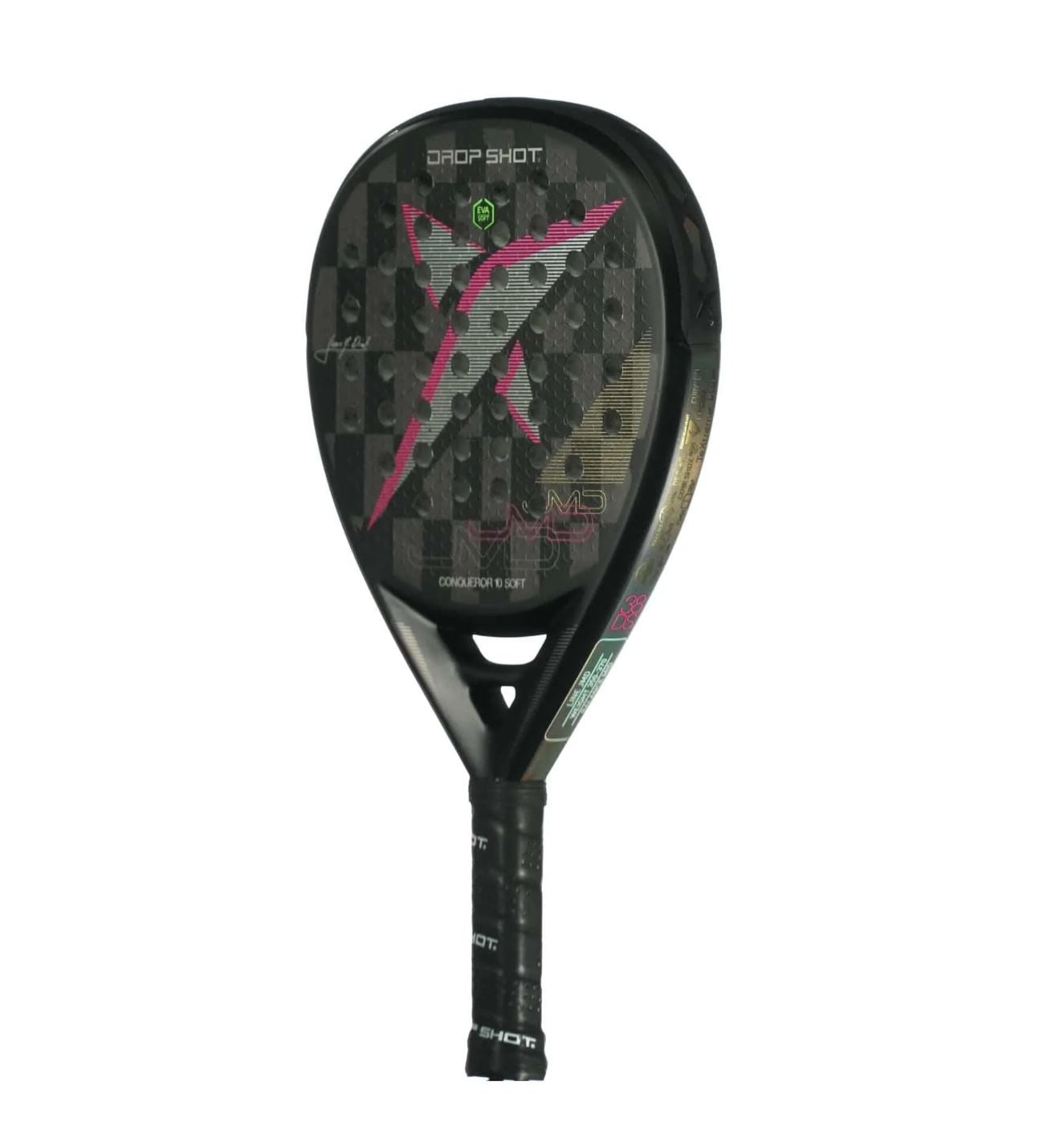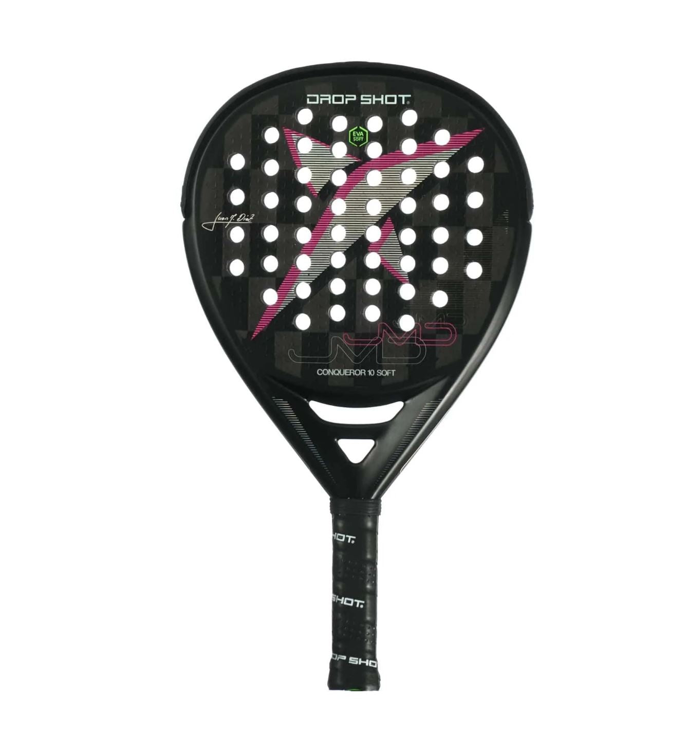Conqueror 10.0 Soft is ontwikkeld in samenwerking met de levende legende, de Argentijn Juan Martin Diaz, die al een aantal jaar deel uitmaakt van de World Padel Tour. Er is aandacht besteed aan details, waarbij het oppervlak is ontworpen met Drop Shot's 3D Face; een ruitvormige textuur die zorgt voor een verbeterde impact in je slag met de bal.